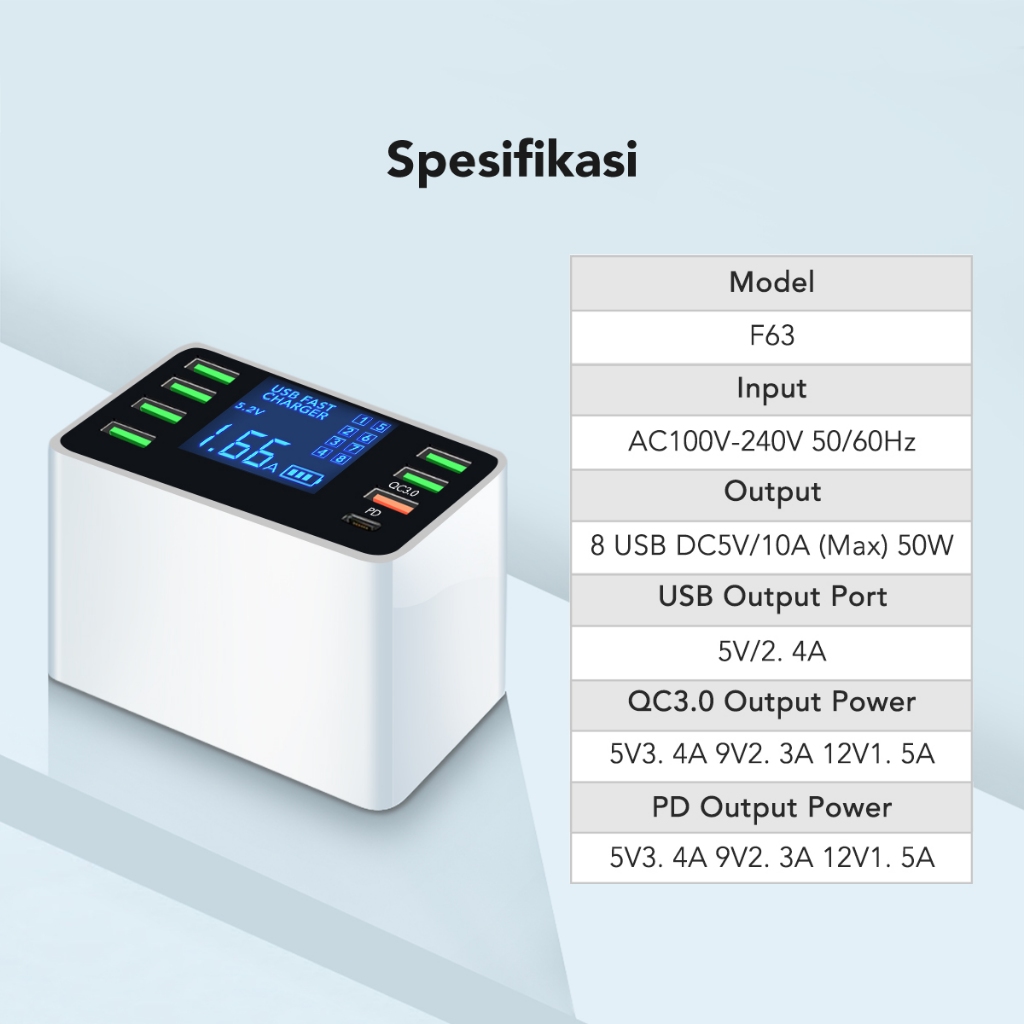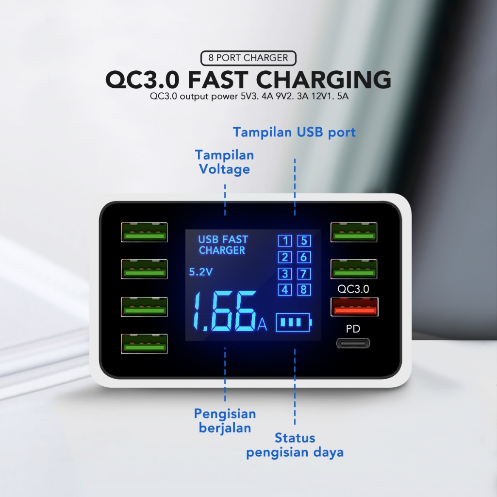 AMINO 8 USB PORT MULTI PORT CHARGER QC 3.0/PD FAST CHARGER LED FUNCTION 40W