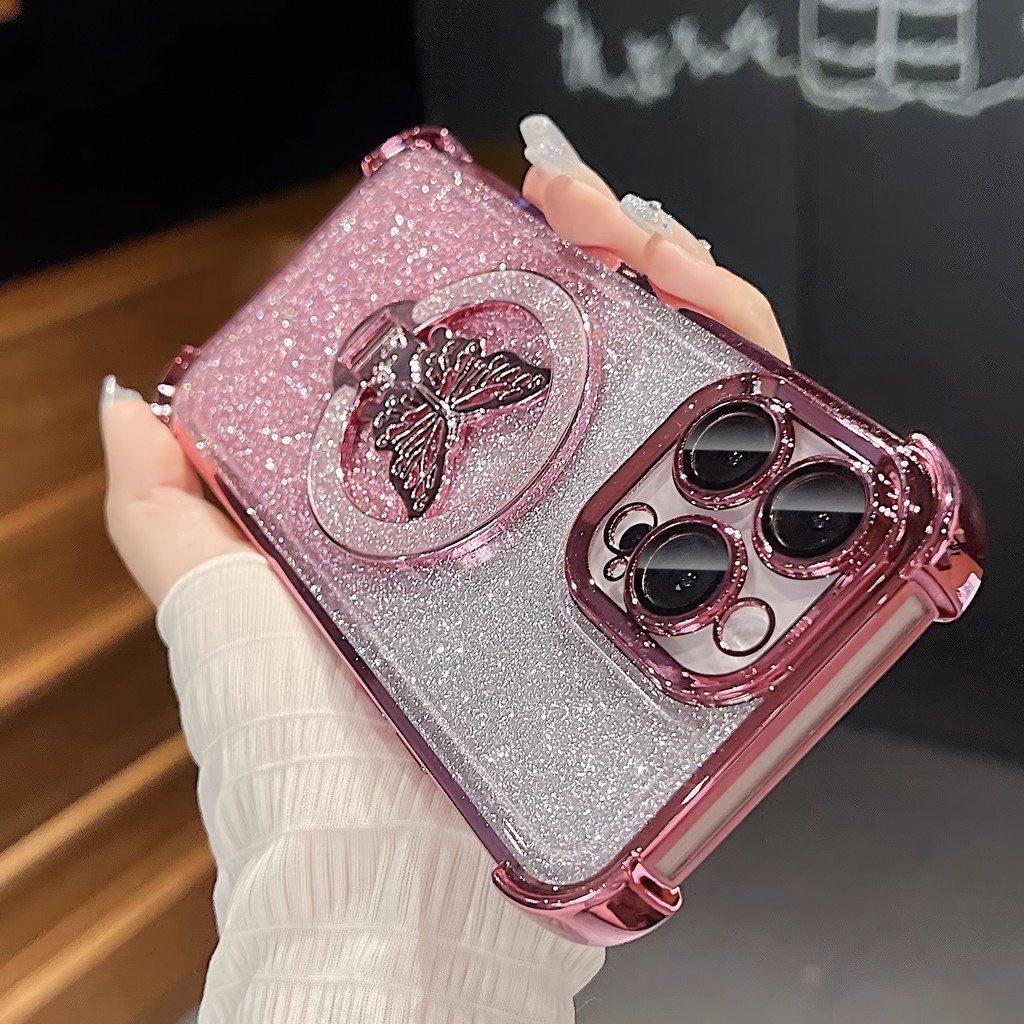 AESTHETIC CASE IPHONE 15 11 12 16 13 14 PRO MAX DELUXE CLEAR PC QUADRANGULAR AIRBAG DROP RESISTANT CASE IPHONE 14 15 16 PLUS WITH GLITTER BUTTERFLY FOLDING STAND SHOCKPROOF HARD CASE