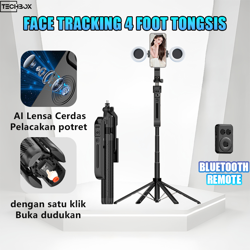 TECH PELACAKAN WAJAH OTOMATIS TRIPOD SELFIE STICK 1.8M GIMBAL HANDPHONE STABILIZER 360 ° STAND 4-LEG TONGSIS DENGAN LED LAMPU GANDA AUTO FACE TRACKING TRIPOD