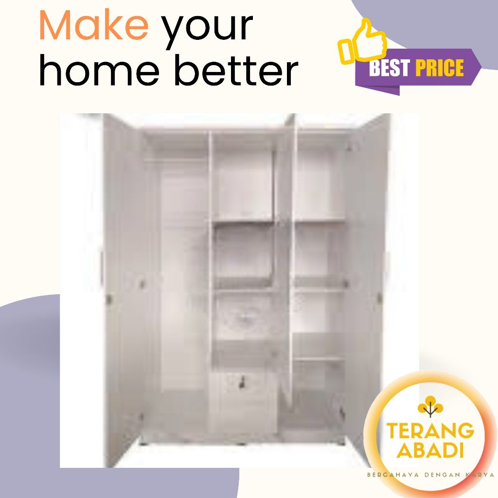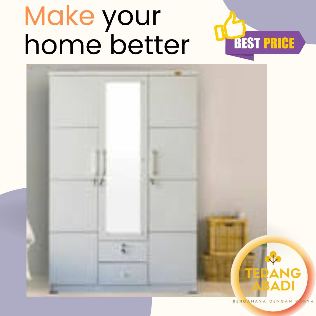 [NEW] Lemari Pakaian 2 Pintu Modern Minimalis PUTIH Termurah / Lemari Pakaian 3 Pintu Modern PUTIH