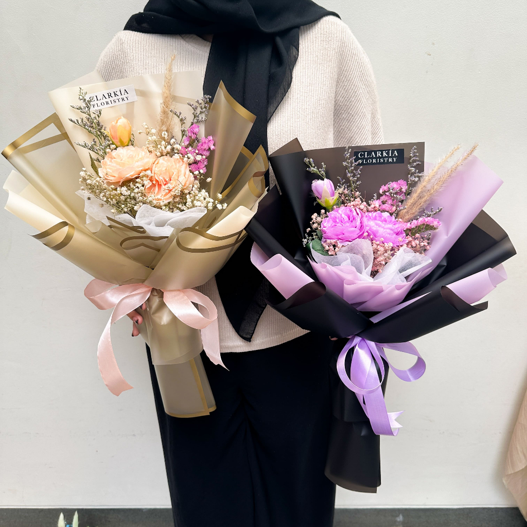 Artificial 2 Aster Bouquet Clarkia Floristry | Buket Bunga 2 Tangkai Aster | Hadiah Kado Wisuda Ulang Tahun Anniversary