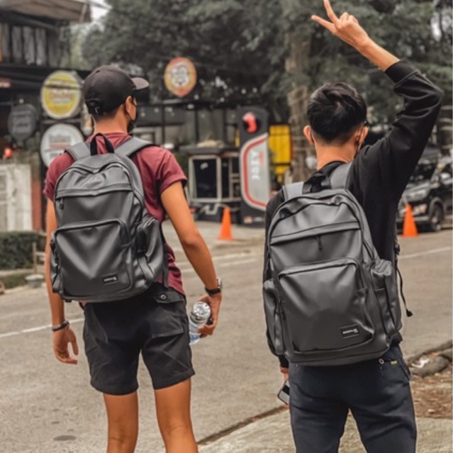 DHON.ID Tas Ransel hitam Pria wanita Waterproof anti air unisex backpack laptop punggung