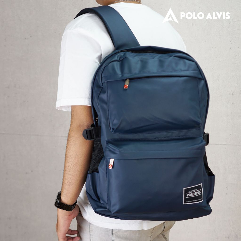 POLO ALVIS - Urban Havana Navy Waterproof Tas Ransel Pria Unisex Anti Air Backpack Laptop 15in Tebal