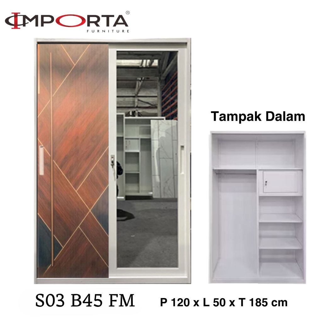 ( Free Ongkir + Rakit ) Lemari Pakaian Besi 2 Pintu Sliding Import Lemari Baju Besi