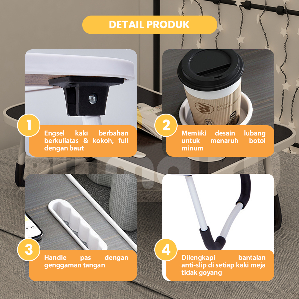 Rumaku Meja Lipat Belajar Laptop Jumbo Ukuran 60x40 Cm Dengan Handle Motif Polos Anti Slip Bahan Kayu Kokoh Berkualitas