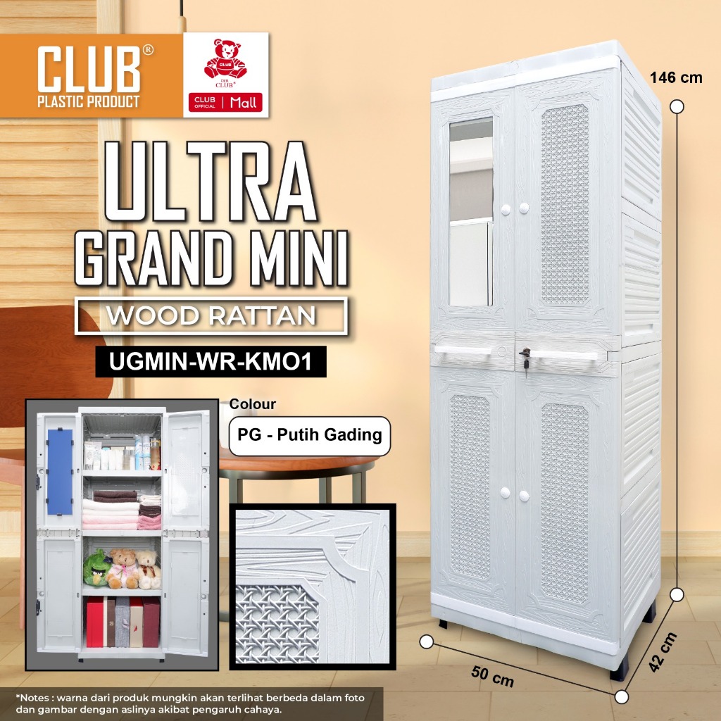 CLUB Plastik - Ultra Grand Mini Lemari Pakaian Plastik - Almari Plastik Rak Susun 4 Plastik