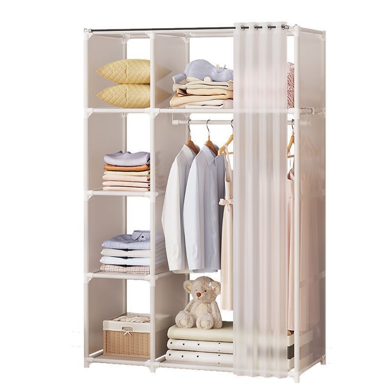 Lemari pakaian sederhana dengan tirai geser, anti serangga dan tahan debu, lemari penyimpanan pakaian berkapasitas besar, mudah dirakit, kokoh dan kuat Furniture