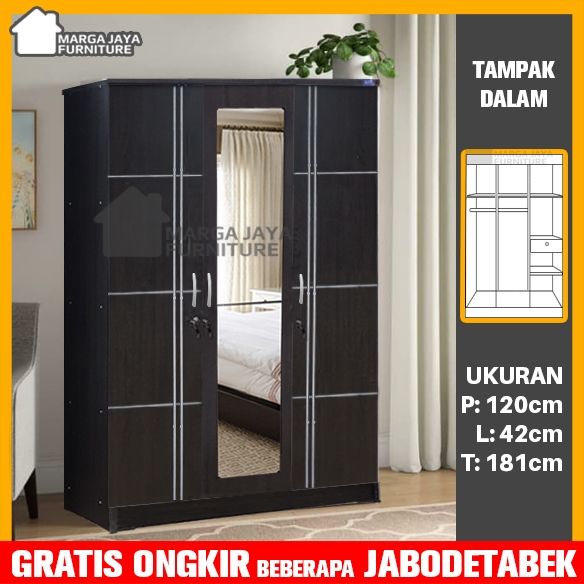 lemari pakaian 3 pintu minimalis putih 120 cm