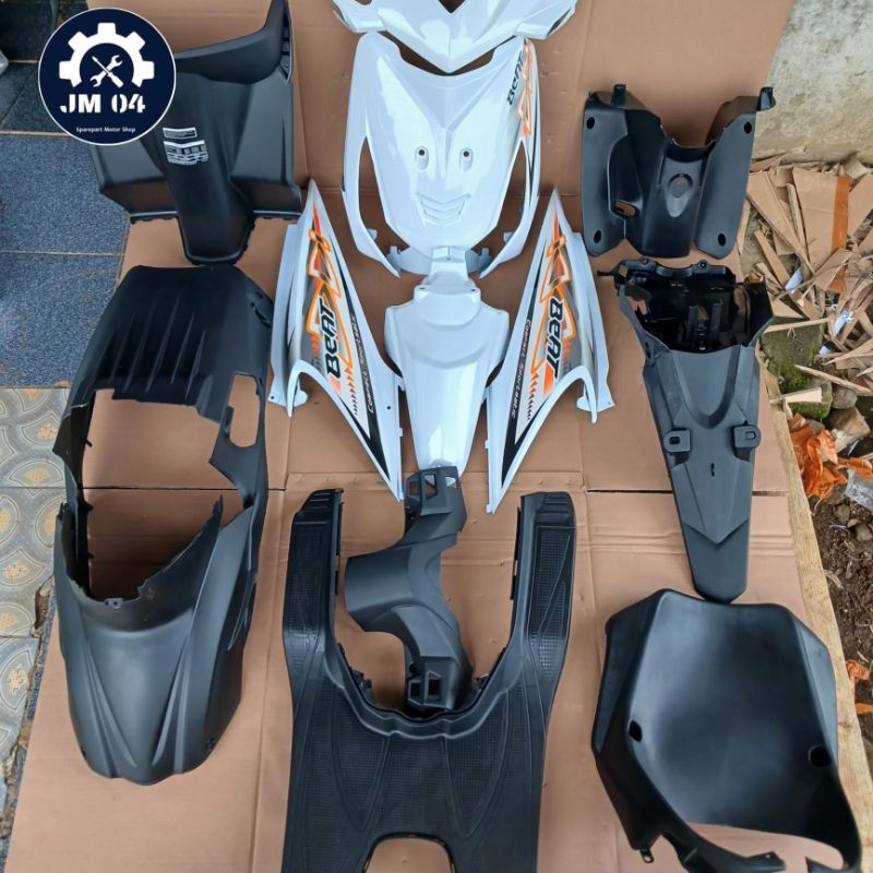 Cover full set body halus kasar motor honda beat karbu 2010-2012 plus striping warna putih