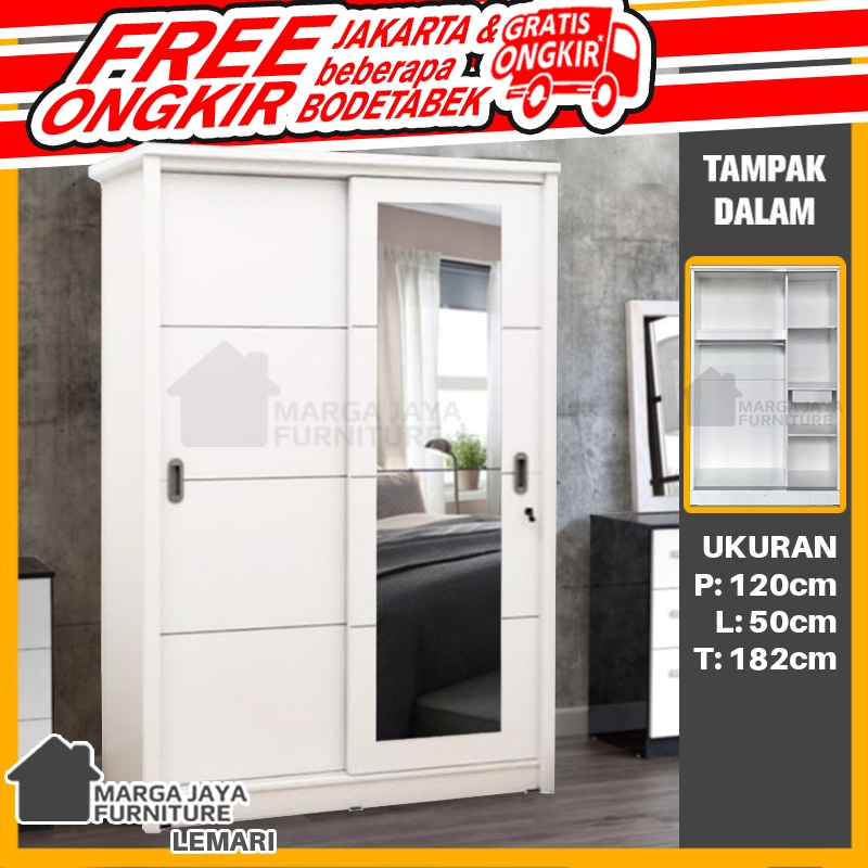 Lemari Pakaian Baju 2 Pintu Sliding + Kaca Full Varian Warna Putih Coklat Hitam