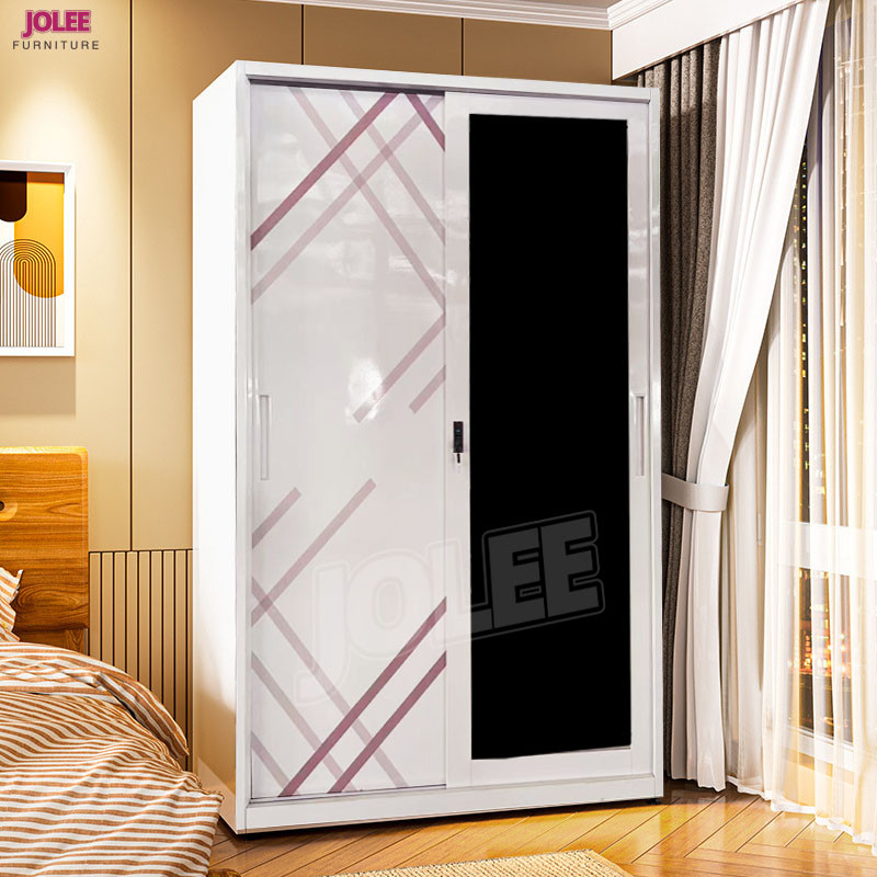 Jolee-Lemari Pakaian Besi Lemari Pakaian slidding 120cm 2 pintu 1 Hanger Cermin Minimalis