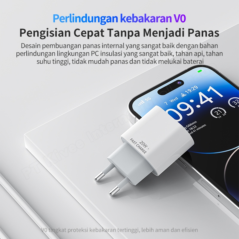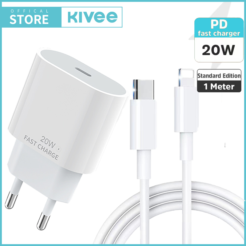 (HOT) KIVEE CHARGER IPHONE FAST CHARGING & KABEL DATA TYPE C TO LIGHTNING PD20W COMBINATION ORIGINAL