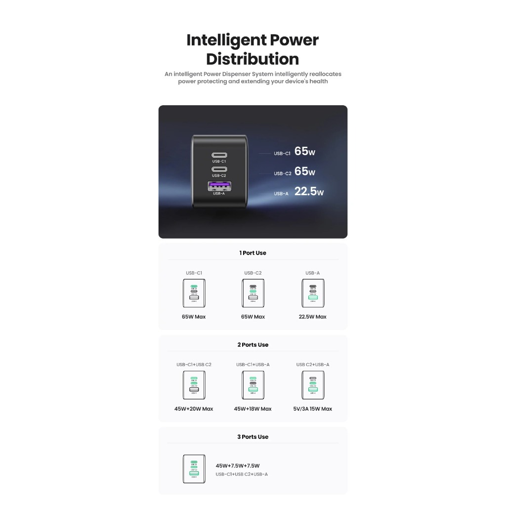 UGREEN KEPALA CHARGER 65W GAN FAST CHARGING PD 3.0 QUICK 3.0 4.0 SCP PPS 10335