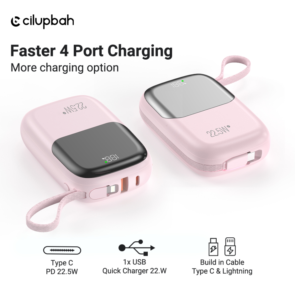 (SERTIFIKAT CCC) CILUPBAH MINI POWERBANK 20.000MAH 10.000MAH FAST CHARGE DUAL OUTPUT (LIGHTNING + TYPE-C + USB) SINGLE INPUT TYPE-C PD20W