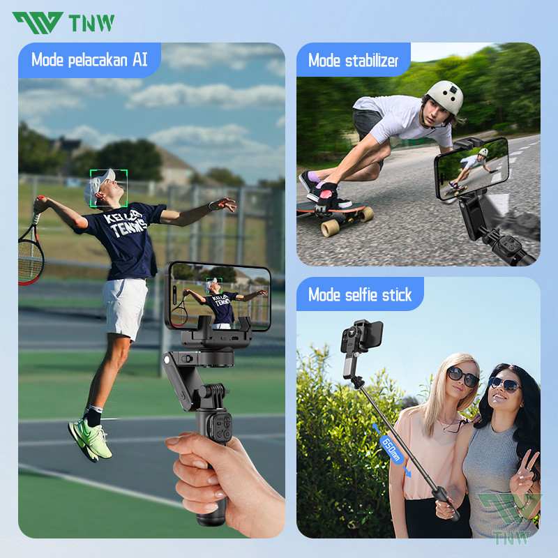 TNW Q19 AUTO FACE TRACKING GIMBAL STABILIZER 3 AXIS SMARTPHONE STABILIZER TONGSIS HP BLUETOOTH TRIPOD FILL LIGHT BLUETOOTH REMOTE CONTROL