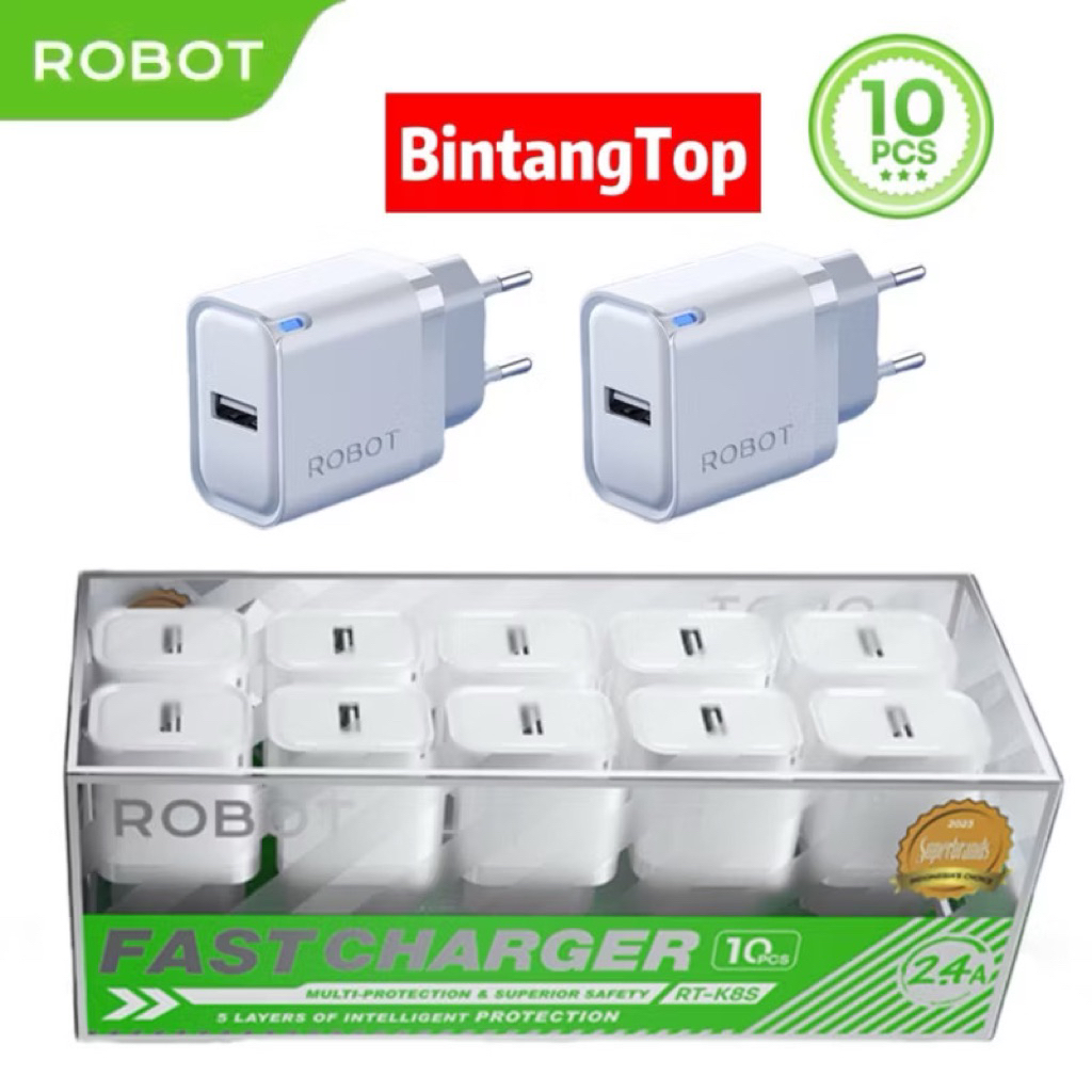 ROBOT RT-K8 RT-K8S / CHARGER ROBOT RT-K8S FAST CHARGER 2.4A 12W USB A ORIGINAL GARANSI RESMI 1TAHUN (1 BOX ISI 10)