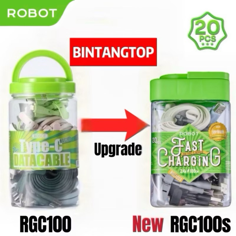 KABEL DATA ROBOT RGC100S 2.4A / RGC100 2.1A TYPE C 100CM ( 1 TOPLES ISI 20PCS ) ORIGINAL
