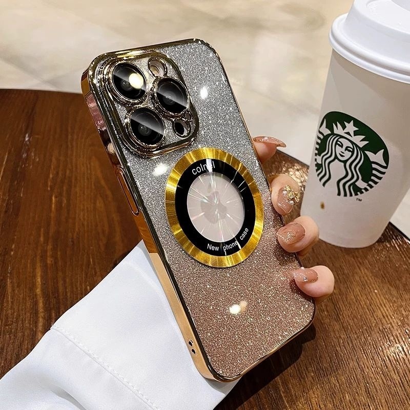 LUXURY GRADIENT GLITTER PLATING MAGNETIC TRANSPARENT CASE FOR IPHONE 16 15 14 13 12 11 PRO MAX SOFT CASE SHOCKPROOF PROTECTION BUMPER BACK COVER