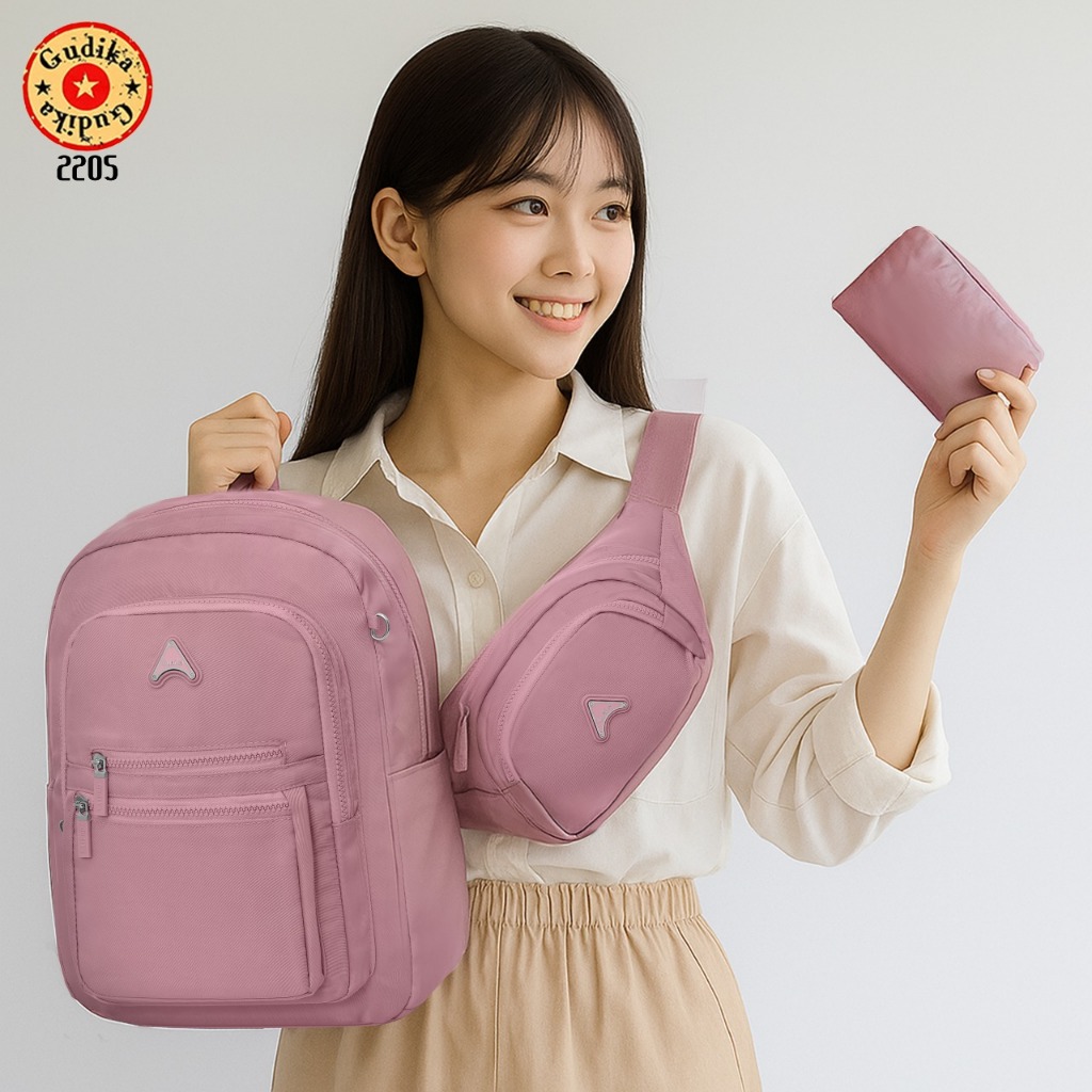 GUDIKA Bags 2205 - Tas Ransel Laptop 14 Inc Set 3 in 1 Import - Tas Wanita Original Branded Import