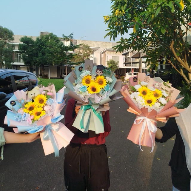 Premium Sunflower Bouquet Artificial | Buket Bunga Matahari Palsu | Hadiah Wisuda & Ulang Tahun Ready Stock