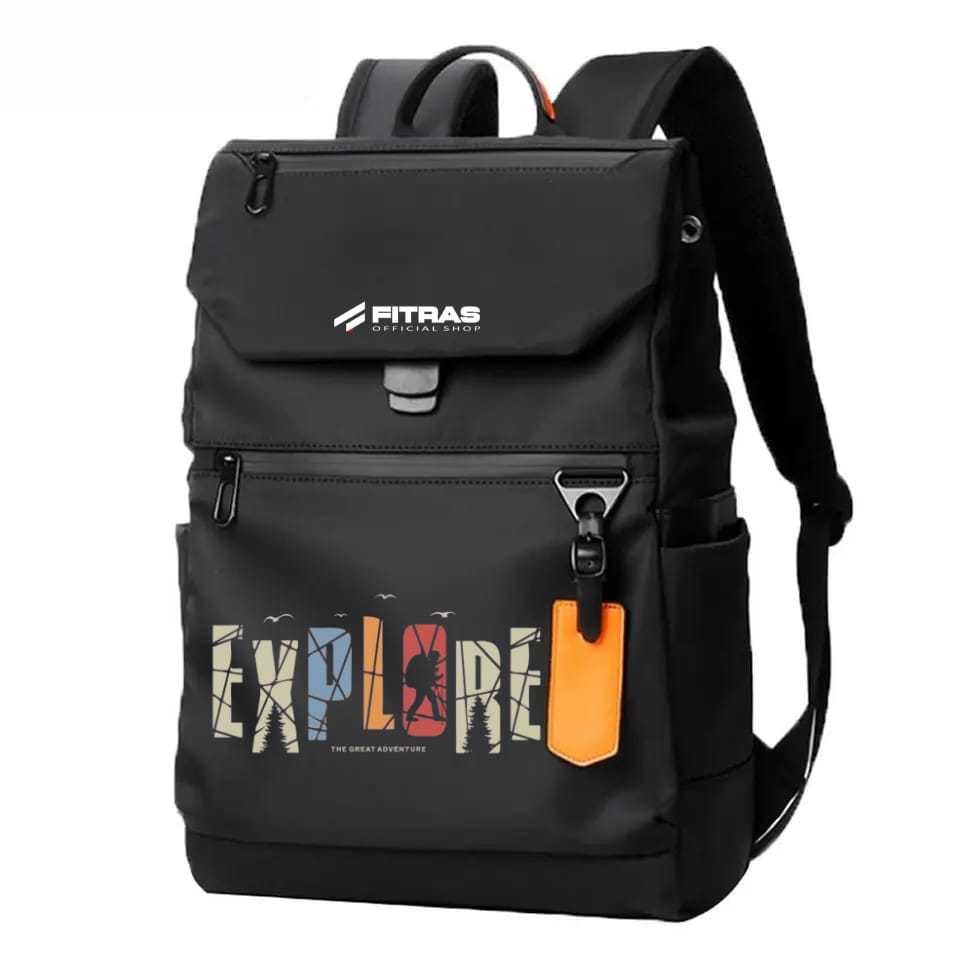Fitras - Tas Ransel Pria Wanita Waterproof Warna Hitam Nilon Bimo