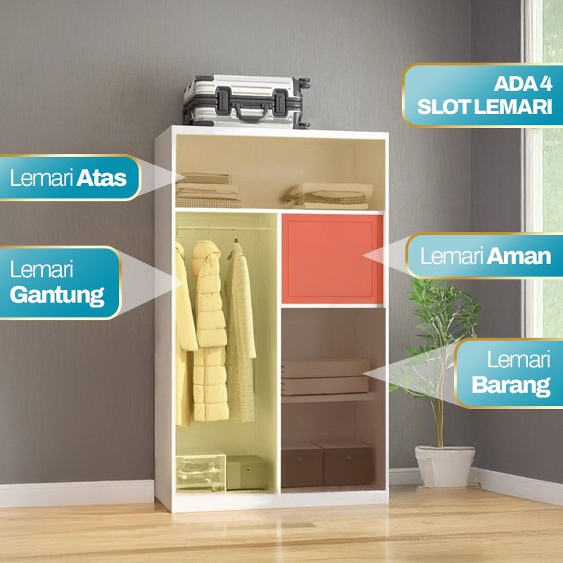 Lemari Pakaian Besi 2 Pintu Sliding Lebar 120 Anti Rayap Karat Lemari Baju Besi Motif Serbaguna