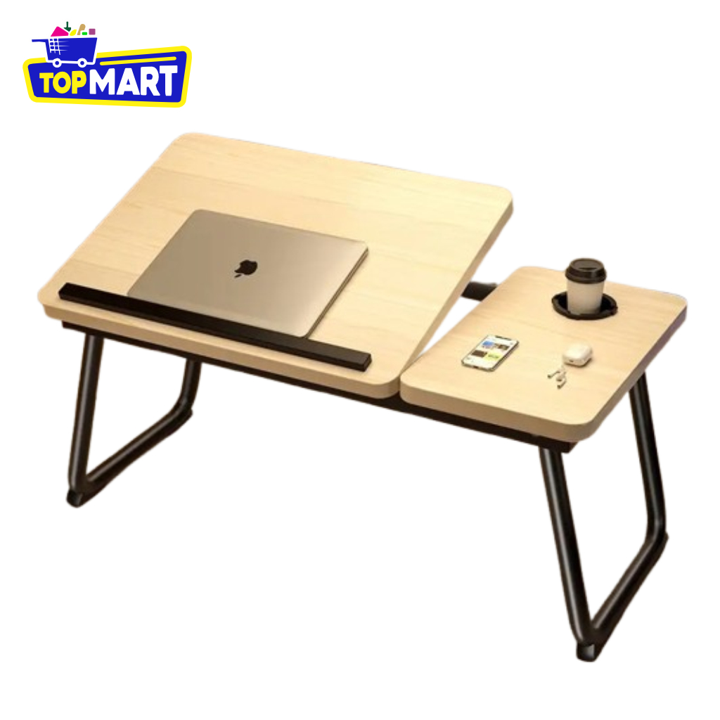 TOPMART Meja Lipat Serbaguna untuk Laptop Belajar Adjustable dengan Cup Holder