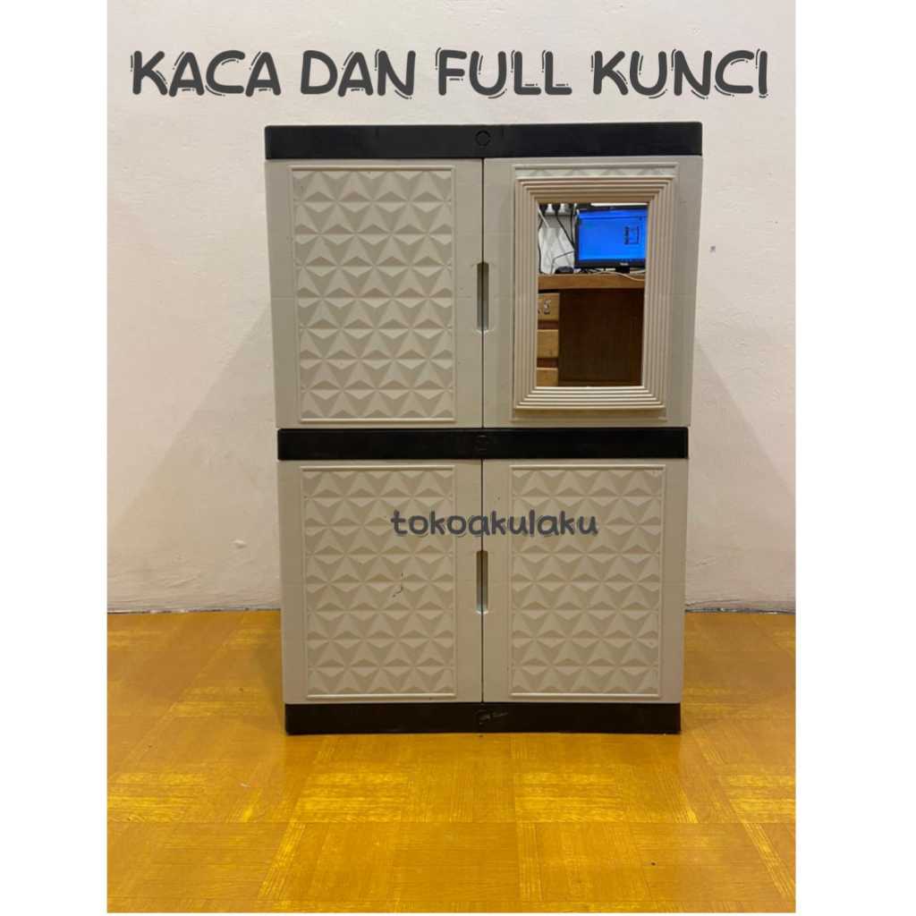LEMARI PLASTIK LEMARI PAKAIAN LEMARI BAJU KACA PUTIH FULL KUNCI