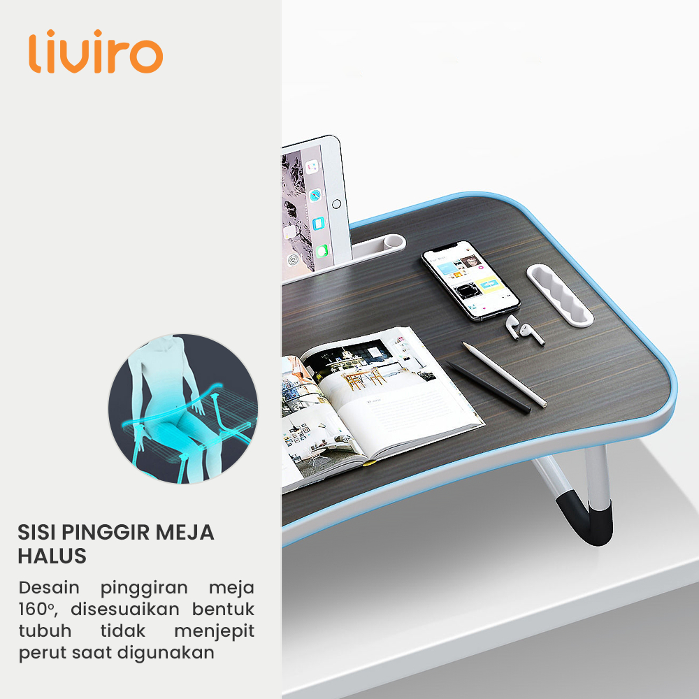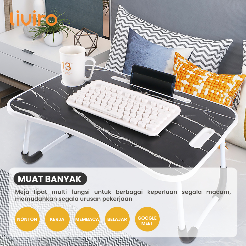 Liviro Meja Lipat Belajar Laptop Jumbo Ukuran 60x40 Cm Motif Polos Anti Slip Bahan Kayu Kokoh