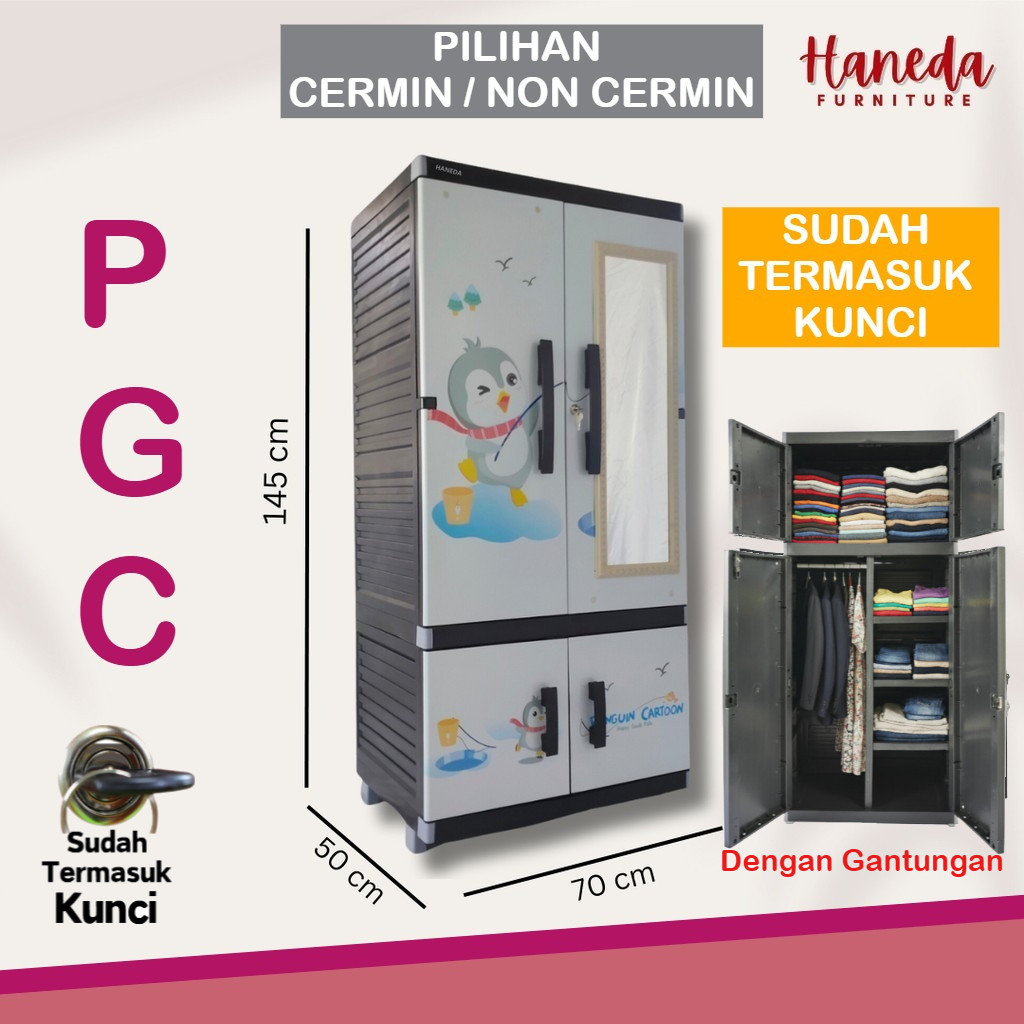 HANEDA Lemari Pakaian Plastik MR PLAS STICKER STANDAR Lemari GANTUNGAN Lemari Susun Cermin Kunci