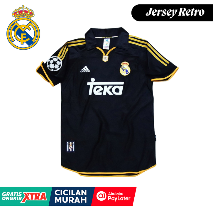 JERSEY RETRO REAL MADRID AWAY 1999-2000 TEKA BLACK POLYESTER - JERSEY MADRID RETRO BEST SELLER - GRATIS ONGKIR