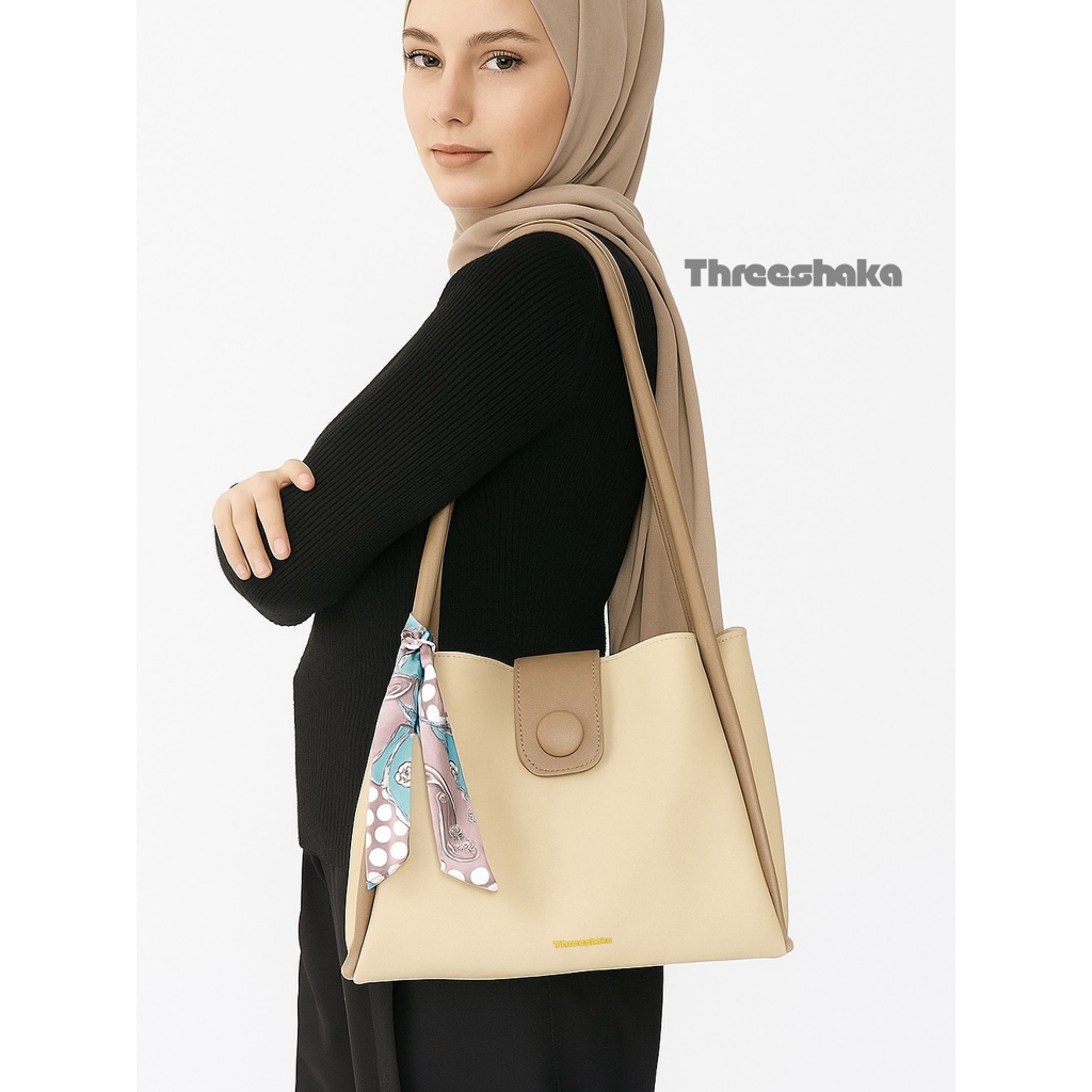 Threeshaka - Tote Bag Wanita Florida Free Pouch/ Tas Bahu Florida Free Pouch + Syall Twilly