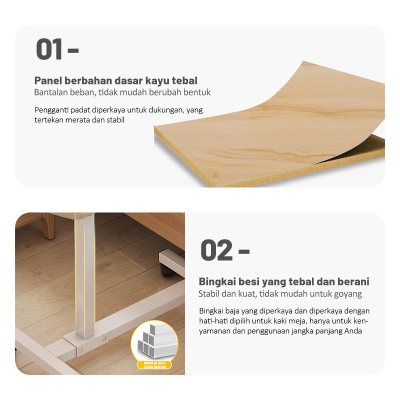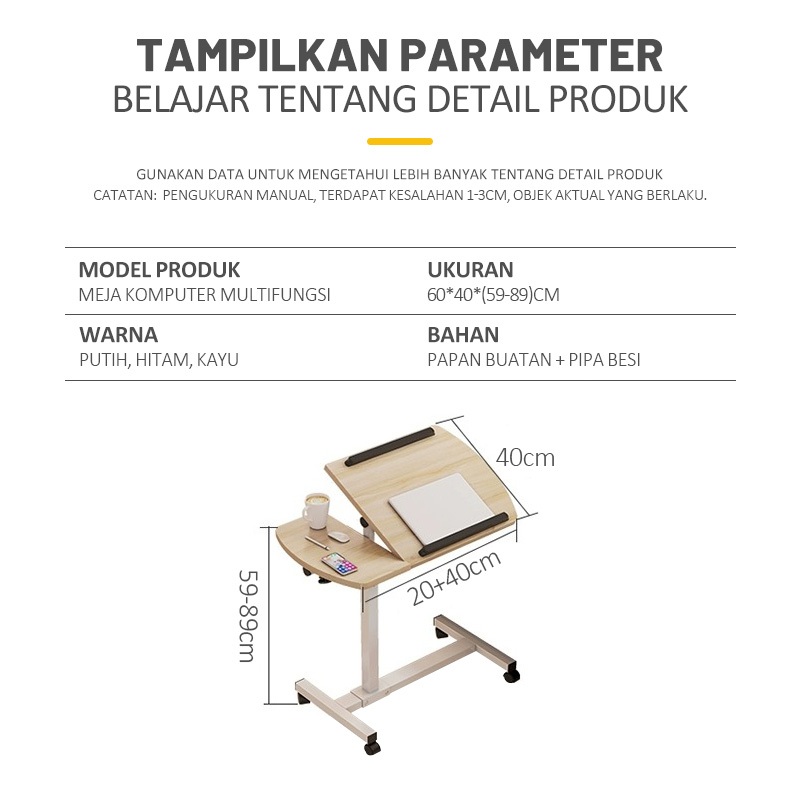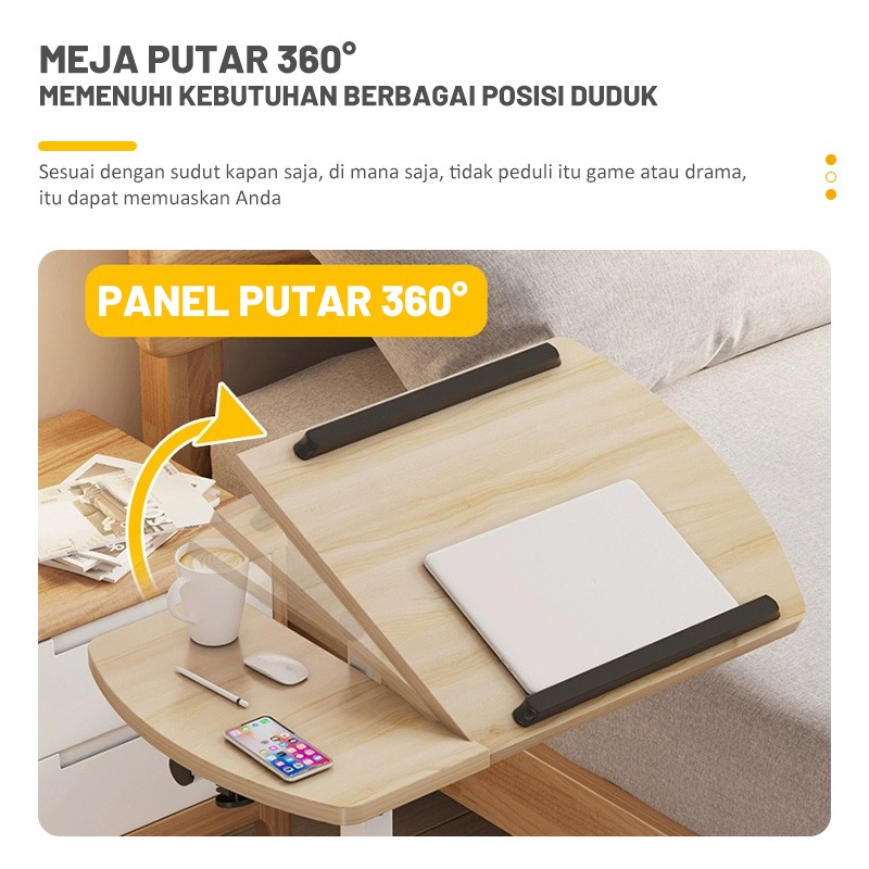 YONEZAWA Meja Belajar Meja Laptop Lipat Meja Laptop Adjustable Meja Ranjang Geser Meja Serbaguna Meja Makan Ranjang Meja