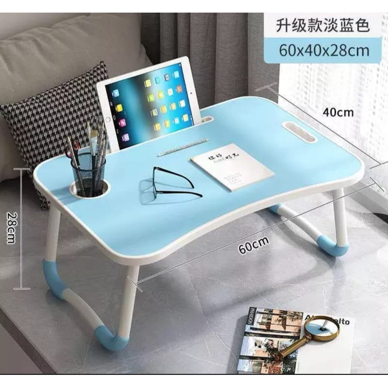 Meja Laptop Portable Premium Meja Belajar Lipat Meja 3 Slot Hitam Biru Kayu Cokelat Meja Belajar Lipat