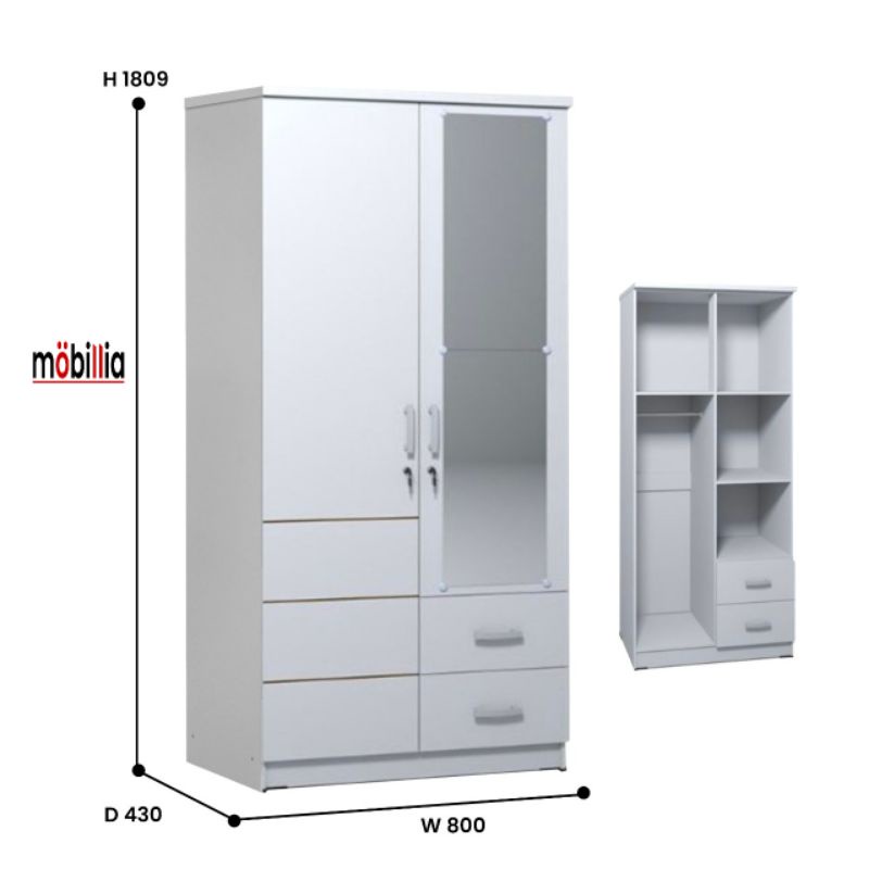Lemari Pakaian Minimalis 2 Pintu Kayu Putih