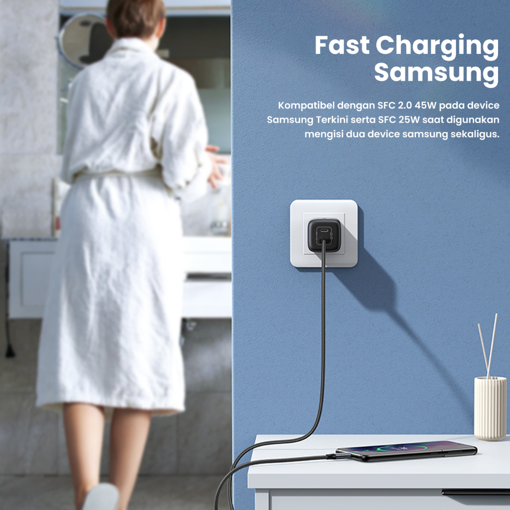 KEPALA CHARGER FOR SAMSUNG GALAXY S25 S24 S23 S22 ULTRA PLUS UGREEN 45W ADAPTOR TYPE C FAST CHARGING KABEL PENGISI
