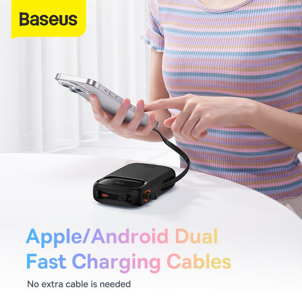 BASEUS QPOW2 22.5W FAST CHARGING POWER BANK DUAL-CABLE TYPE-C PD QC SFC
