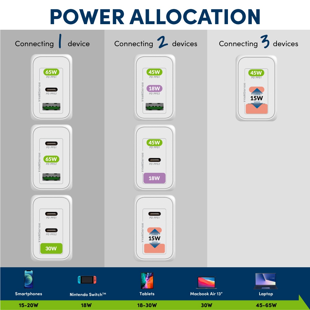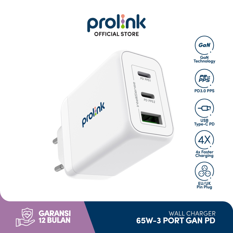 PROLINK 65W L 3-PORT L GAN PD KEPALA CHARGER L QUICK CHARGERING L TRAVEL LAPTOP CHARGER