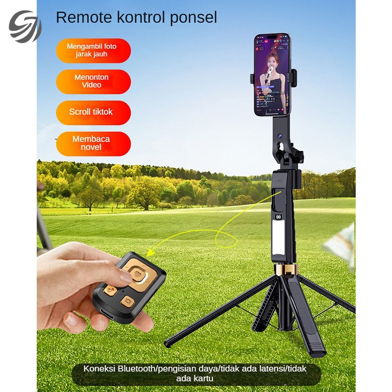 CIJI CL12P 180CM SELFIE STICK AUTO AI FACE TRACKING QUAD STAND 360 ROTATION GIMBAL TRIPOD STABILIZER HP/KAMERA DSLR/TONGSIS DENGAN 1/4 ADAPTOR DAN LAMPU LED