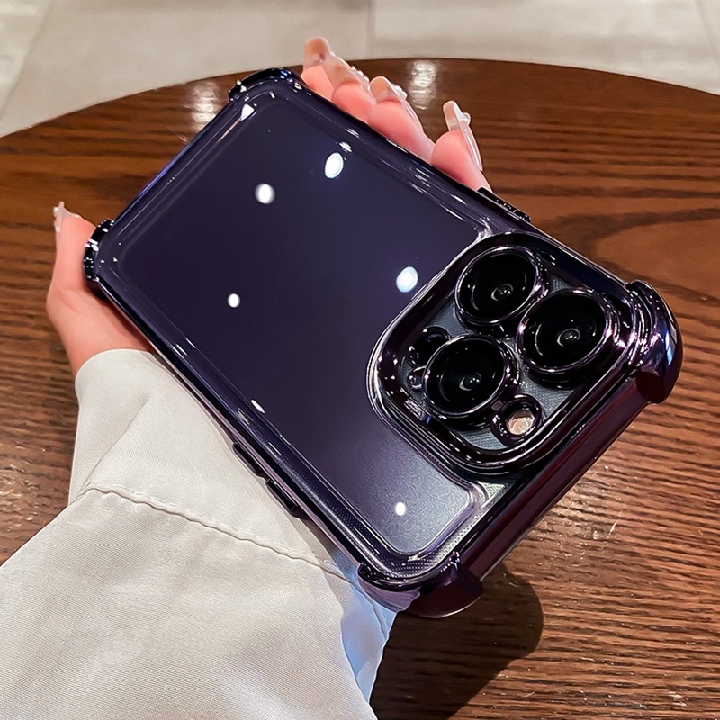 PLATING AIRBAG CASE FOR IPHONE 16 15 14 13 12 11 PRO MAX 15 PLUS WITH LENS PROTECTOR CASING IPHONE 11 12 15 14 13 16 PROMAX 15 PLUS PREMIUM SHOCKPROOF TRANSPARENT BUMPER BACK COVER