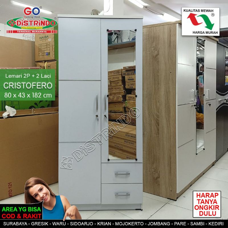 Lemari Pakaian 2Pintu Full White Papan Tebal Halus Luar Dalam 2L Depan Cermin Panjang Modern