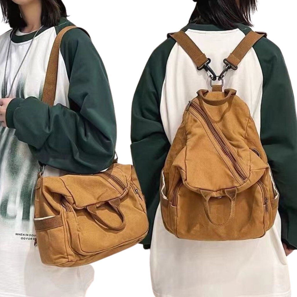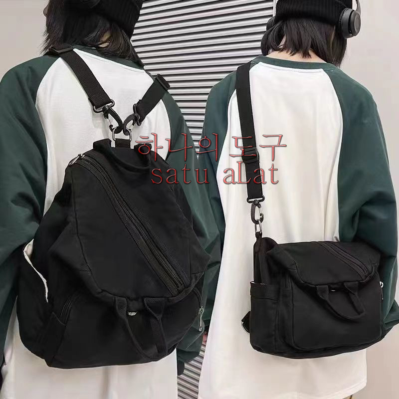 SATU ALAT Tas 2 IN 1 Ransel + Tas Selempang QUBICAL 100 PERSEN Canvas Premium Tebal Tas Kanvas