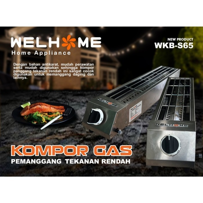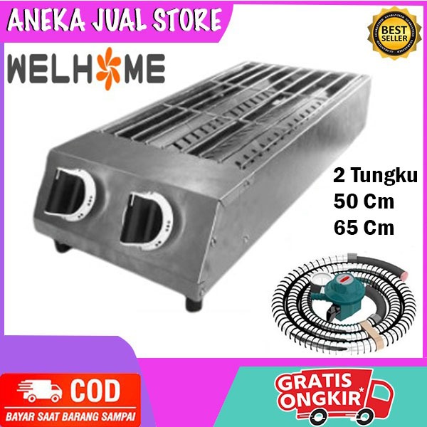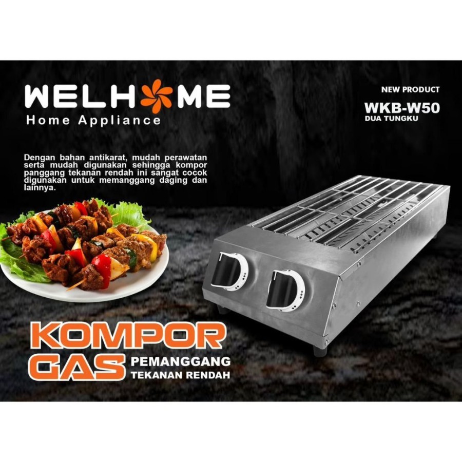 WELHOME WKB-W50 /WKB-W65/WKB-S50/WKB-S65 Kompor Gas Pemanggang Griller 2 Tungku/1 Tungku 50/65 Cm / Kompor Bakaran Sate