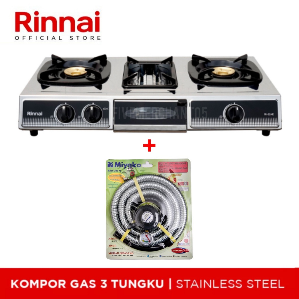 Kompor Gas 3 Tungku Rinnai RI 524 E Kompor Stainless Panggangan Rinnai 524 Kompor Panggang Rinnai RI 524E