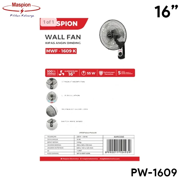 [Mall] KIPAS ANGIN DINDING MASPION MWF1609K UKURAN 16 INCH WALL FAN BESI ORIGINAL MASPION OFFICIAL STORE