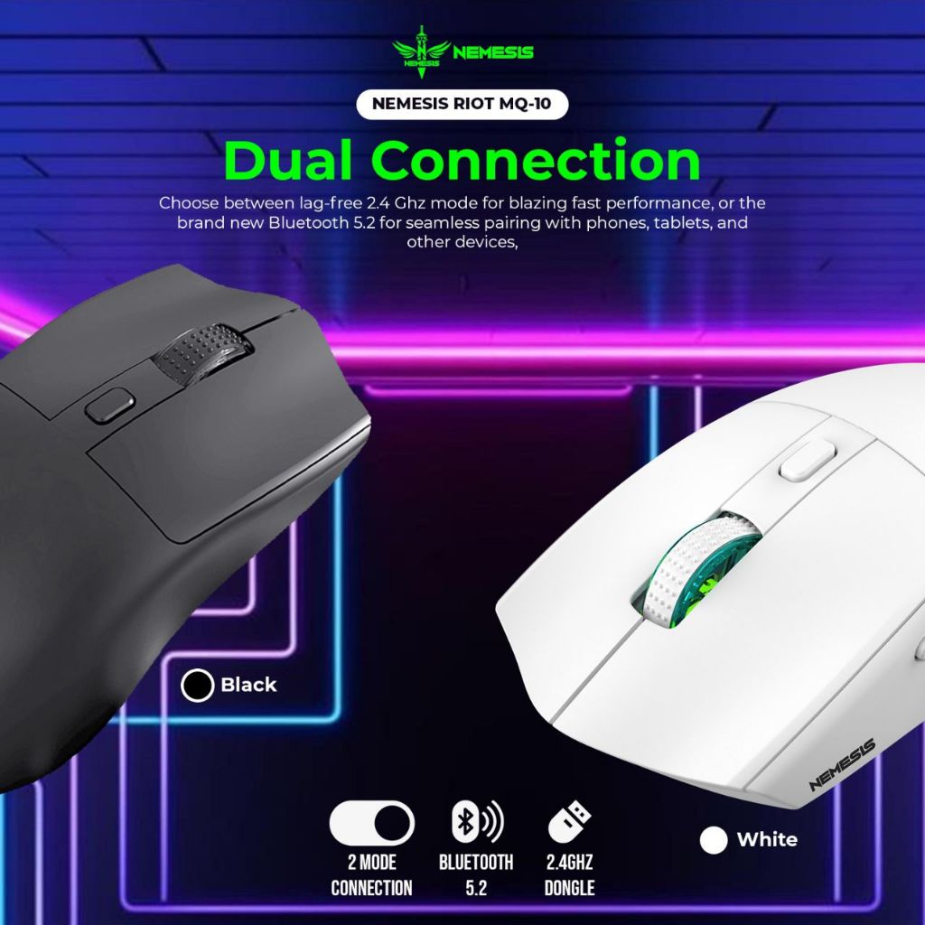 Mouse NYK Nemesis MQ-10 MQ10 RIOT Wireless Bluetooth with Dock RGB | Mouse Gaming