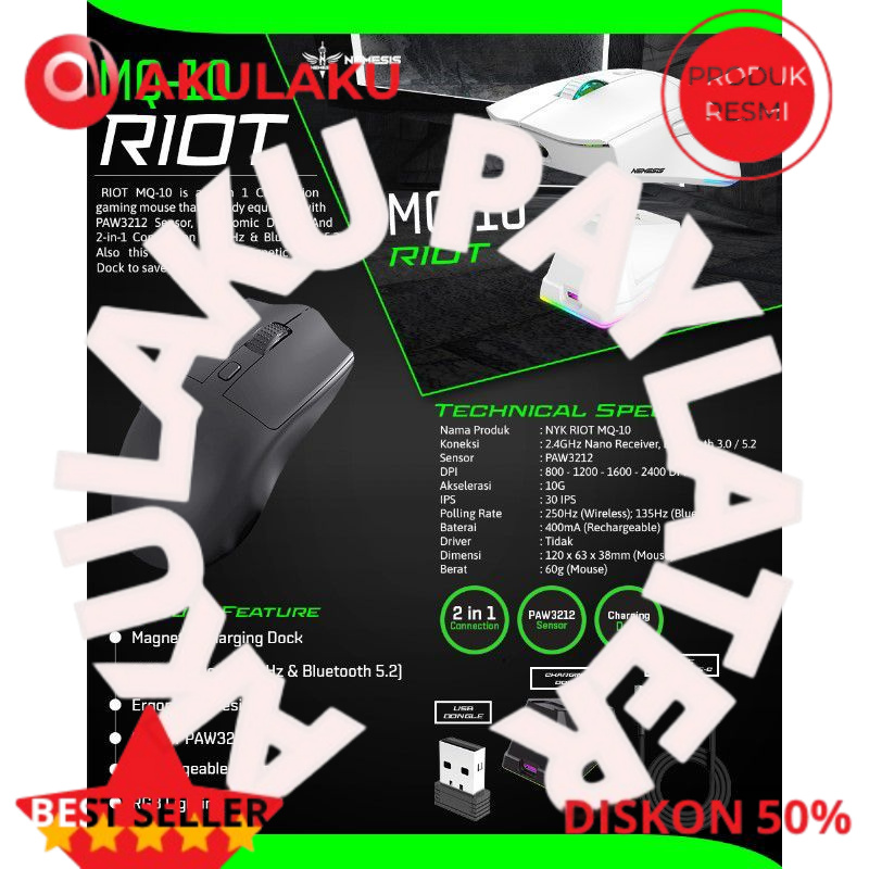 Mouse Wireless Dual e Rechargeable with Docking Charging Nemesis RIOT MQ-10