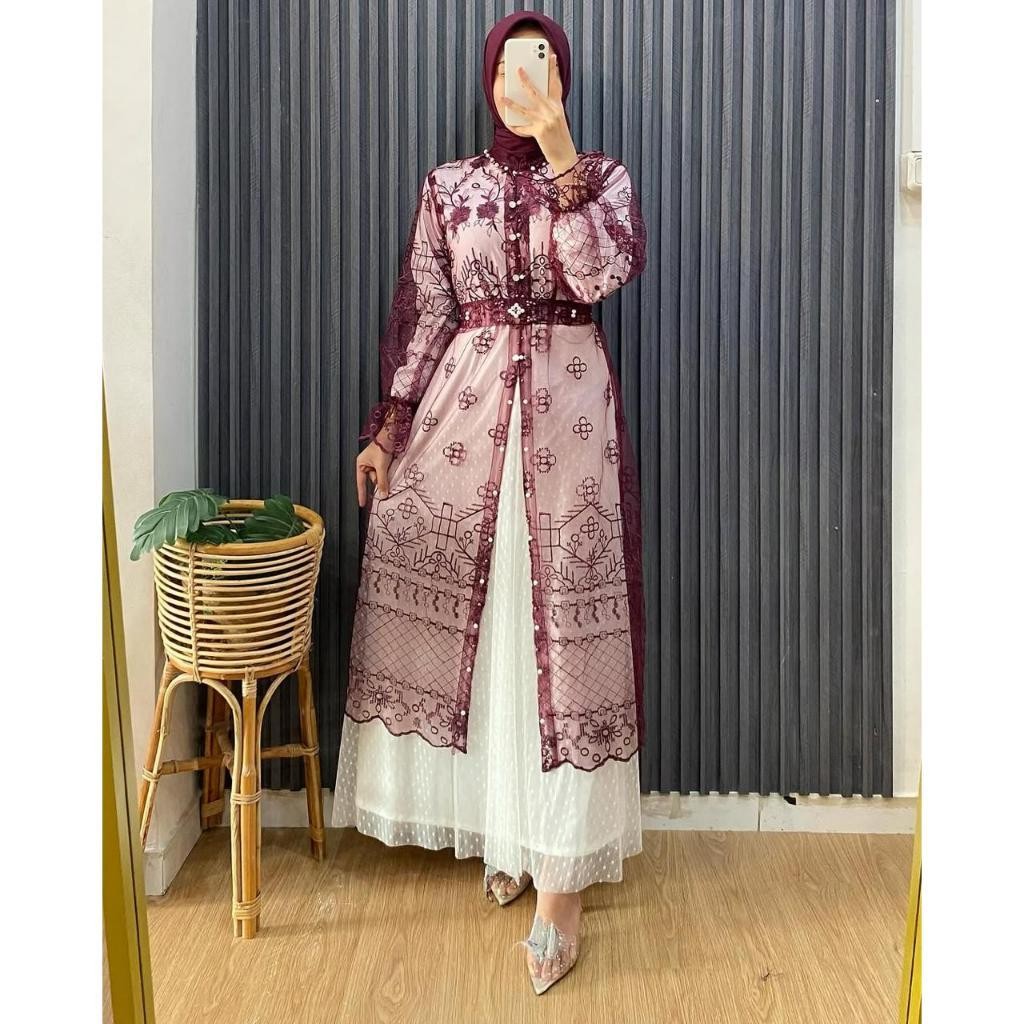 Azzura Outer Tunik Wanita Cardigan Brokat Brukat Kondangan Wisuda Mewah Kekinian Lengan Panjang