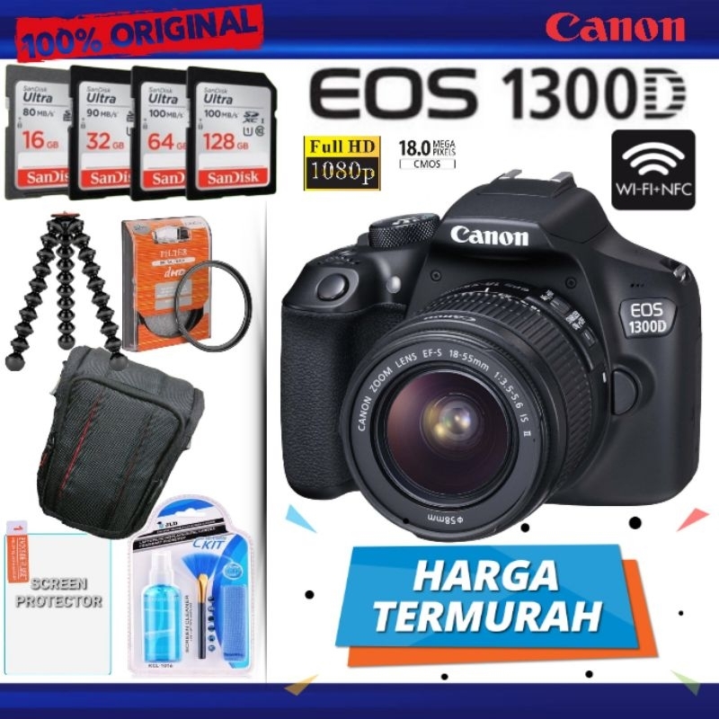 KAMERA DSLR Canon EOS 1300D WIFI + LENSa 18-55MM IS II ( PRODUK BERGARANSI 1 TAHUN DAN KONDISI BARU)