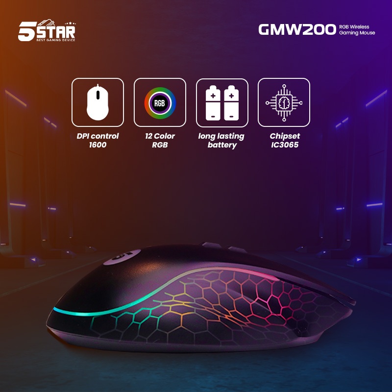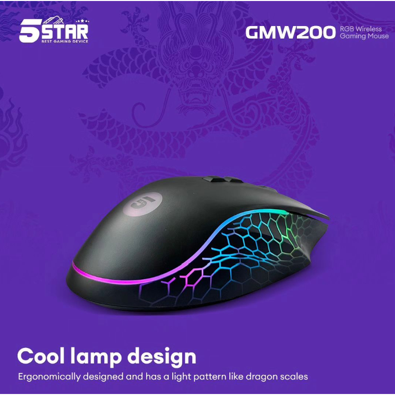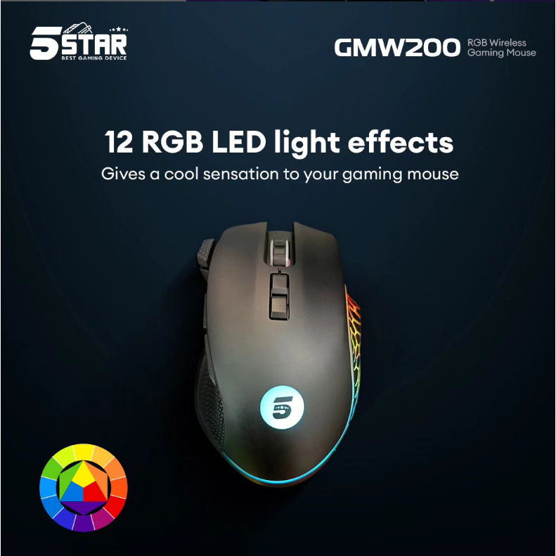 5Star Mouse Bluetooth Wireless Gaming RGB 8 Button 1600 Dpi e switch led Colorful e-sport GMW200